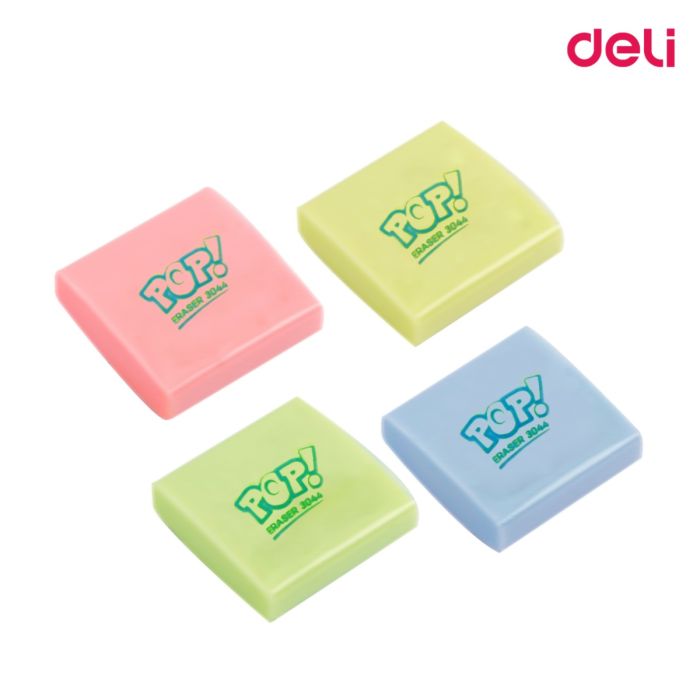 Specification 35×35×11mm, 16gram/pcs Material Eco PVC Packaging Film wrapper/pcs, 36pcs/display box, 36 pcs display box, 864 pcs Spec. Soft 4B eraser Color Pink, blue, green, yellow asst.The Deli Pop Soft Colored Eraser (model H3044) is a high-quality eraser designed for smooth and efficient erasing. Made from eco-friendly PVC material, it ensures durability and a clean erasing experience without damaging paper surfaces. The eraser is available in a variety of vibrant colors, including pink, green, yellow, and blue, adding a touch of fun to your stationery collection.