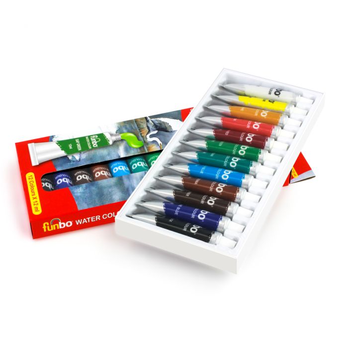 This FunboWatercolour Set contains 12 x 12ml Tubes of Watercolour Paint and is ideal for a beginner. Funbo Watercolour are affordable colours that can be used to paint on all conventional art surfaces such as paper, cardboard, canvases, etc. These soft bodied colours can be used straight from the tubes or thinned with water. FO-WATERCOL-1212 - 6281073417597
