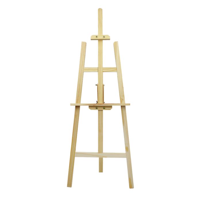 This wooden display, art easel presents your artwork attractively. The display possibilities with this painting stand are endless. This art easel, also known as a picture display, is built from natural Elm wood. The solid wood construction ensures the studio stand will last longer than other comparable units. This art easel also utilizes a minimal footprint, saving you floor space. As a result, this painter display is great for use in places with limited space. The natural finish of this art easel provides a neutral stand that will not detract the viewer's eye away from the artwork. This wooden tripod stand can also be used by hotels and resorts to display paintings in a lobby or meeting room.This art easel, like a picture stand, is very versatile for displaying a variety of frames and artwork. Featuring an adjustable top and bottom bar, this painter display can fit several different sizes of frames. Artwork can be displayed vertically or horizontally with this art easel. The bottom bar of the painting stand clips tightly into place. Each art easel is sold in many other finishes and designs as well. This artist display, picture stand is widely used in galleries, studios, hotel lobbies, trade shows and classrooms.