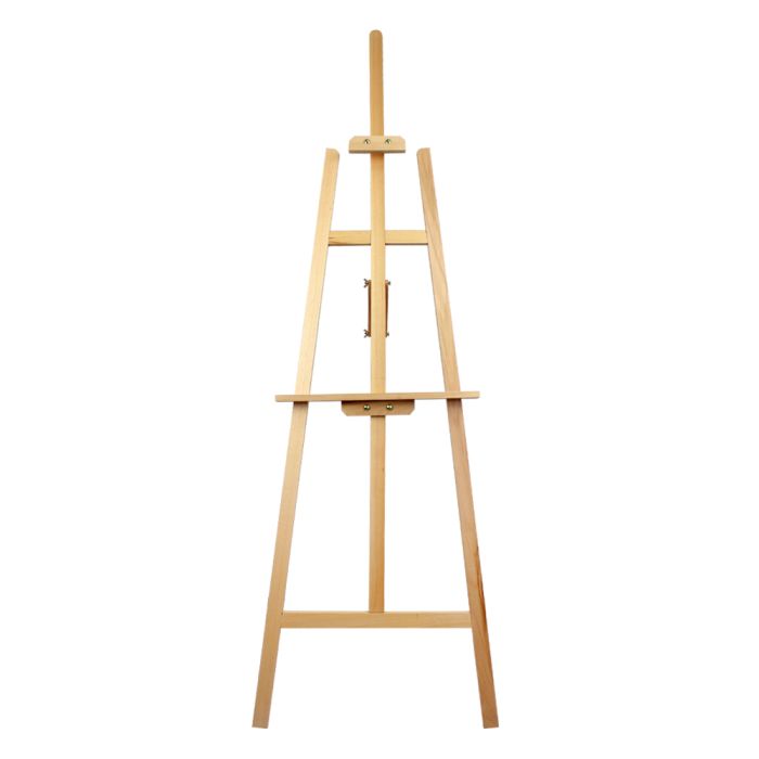 This wooden display, art easel presents your artwork attractively. The display possibilities with this painting stand are endless. This art easel, also known as a picture display, is built from natural Elm wood. The solid wood construction ensures the studio stand will last longer than other comparable units. This art easel also utilizes a minimal footprint, saving you floor space. As a result, this painter display is great for use in places with limited space. The natural finish of this art easel provides a neutral stand that will not detract the viewer's eye away from the artwork. This wooden tripod stand can also be used by hotels and resorts to display paintings in a lobby or meeting room.This art easel, like a picture stand, is very versatile for displaying a variety of frames and artwork. Featuring an adjustable top and bottom bar, this painter display can fit several different sizes of frames. Artwork can be displayed vertically or horizontally with this art easel. The bottom bar of the painting stand clips tightly into place. Each art easel is sold in many other finishes and designs as well. This artist display, picture stand is widely used in galleries, studios, hotel lobbies, trade shows and classrooms.